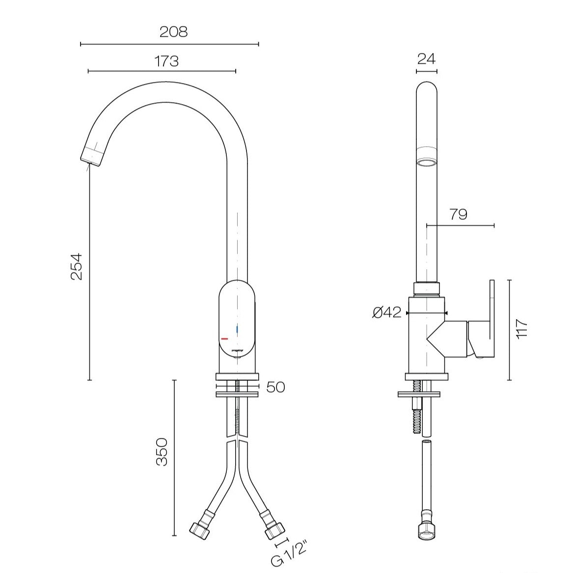 - Spout Reach: 173mm