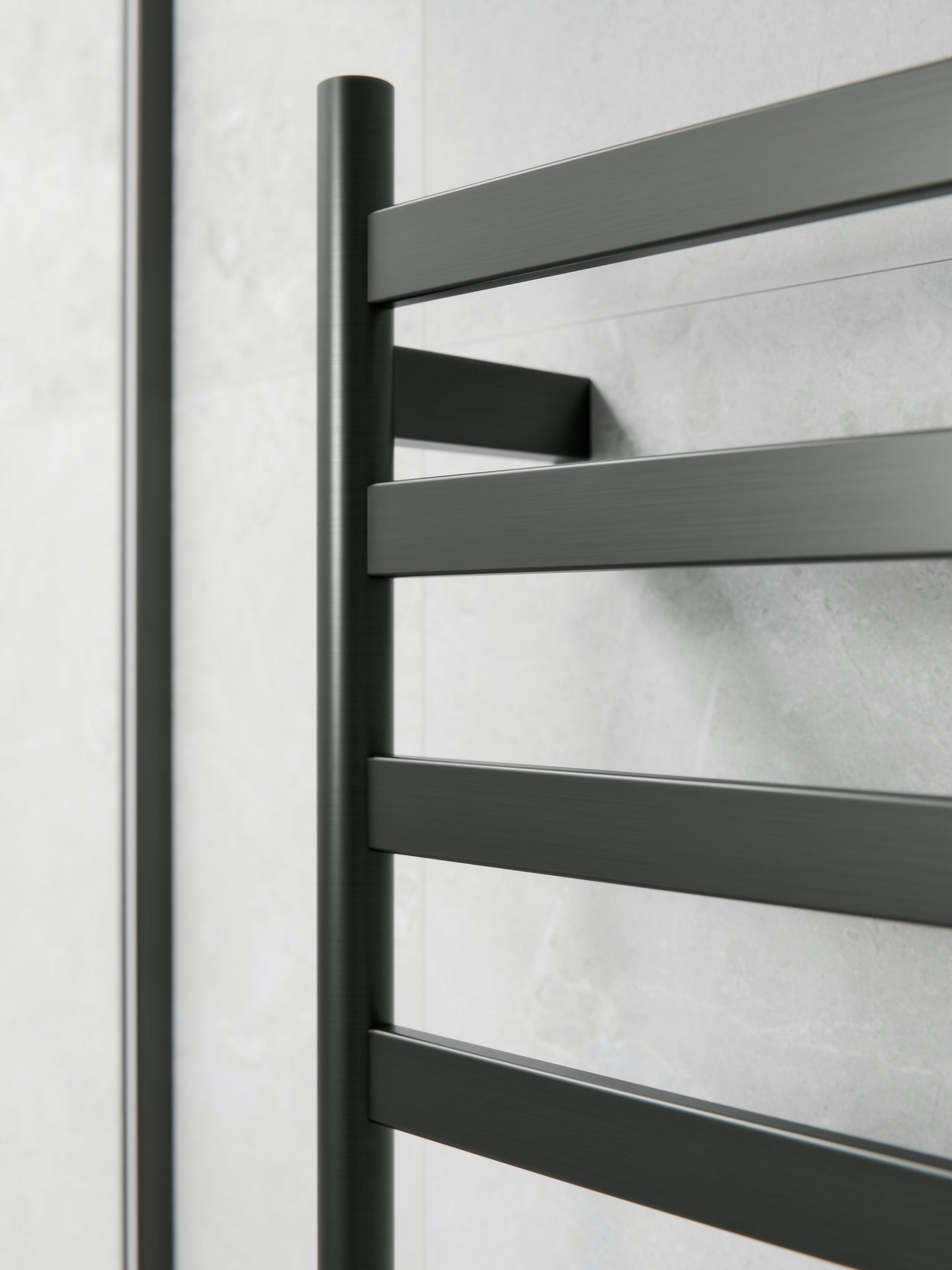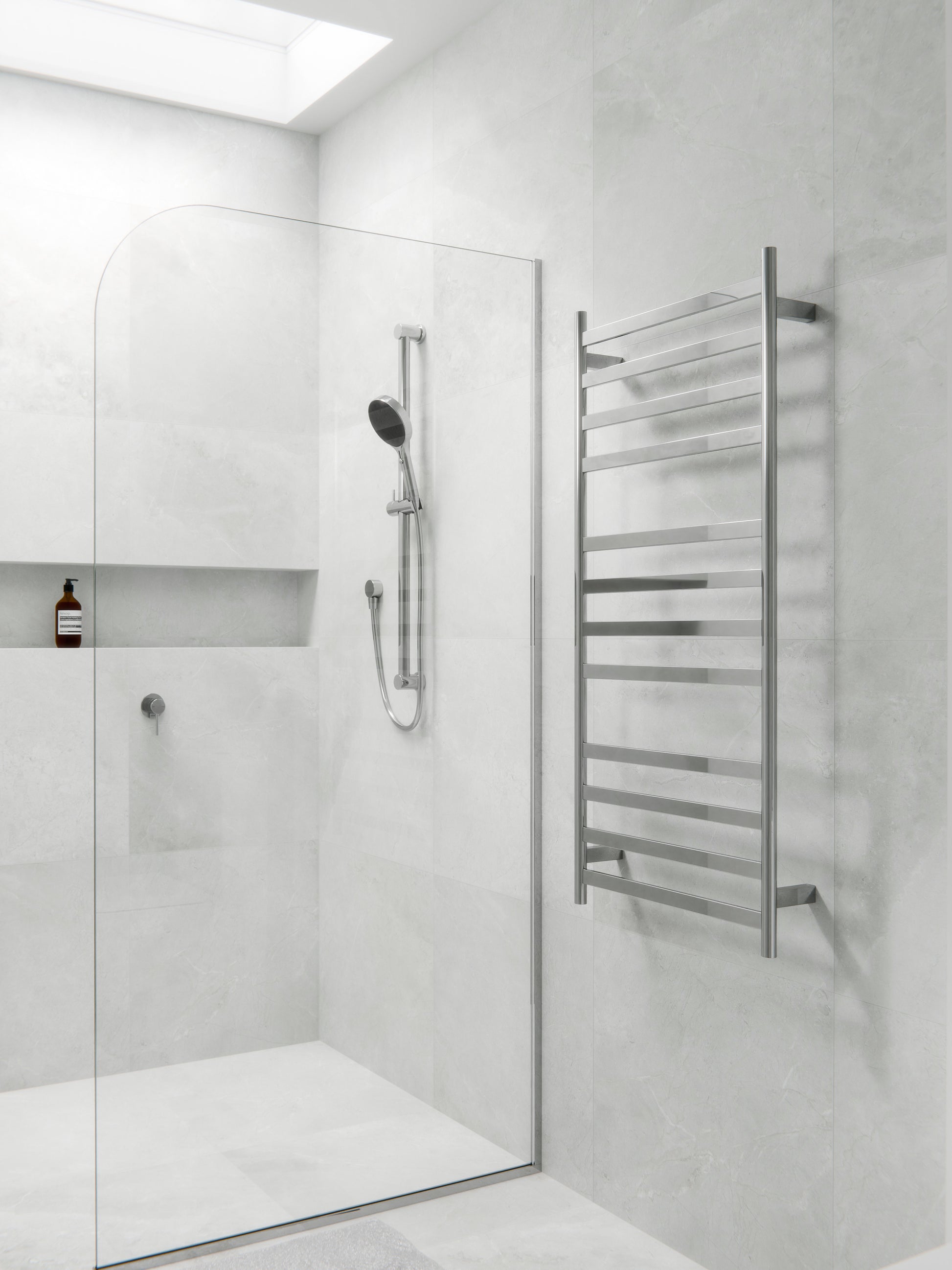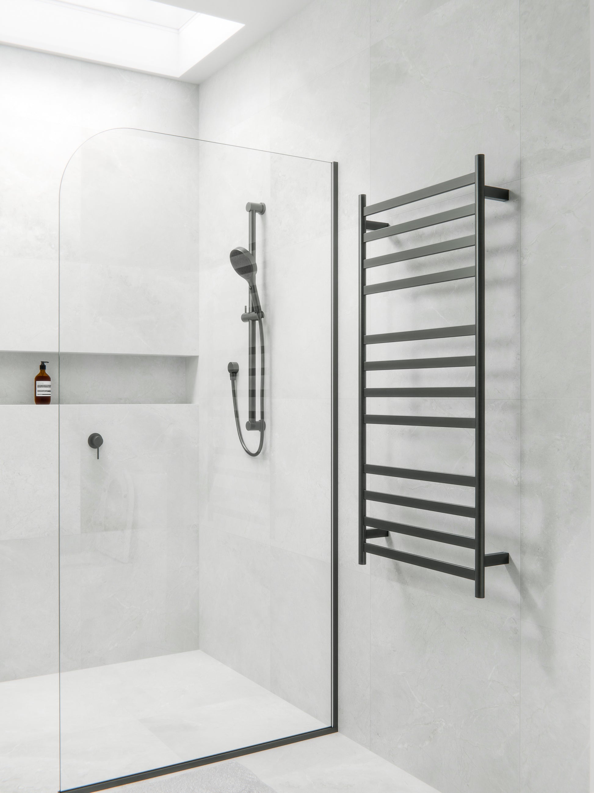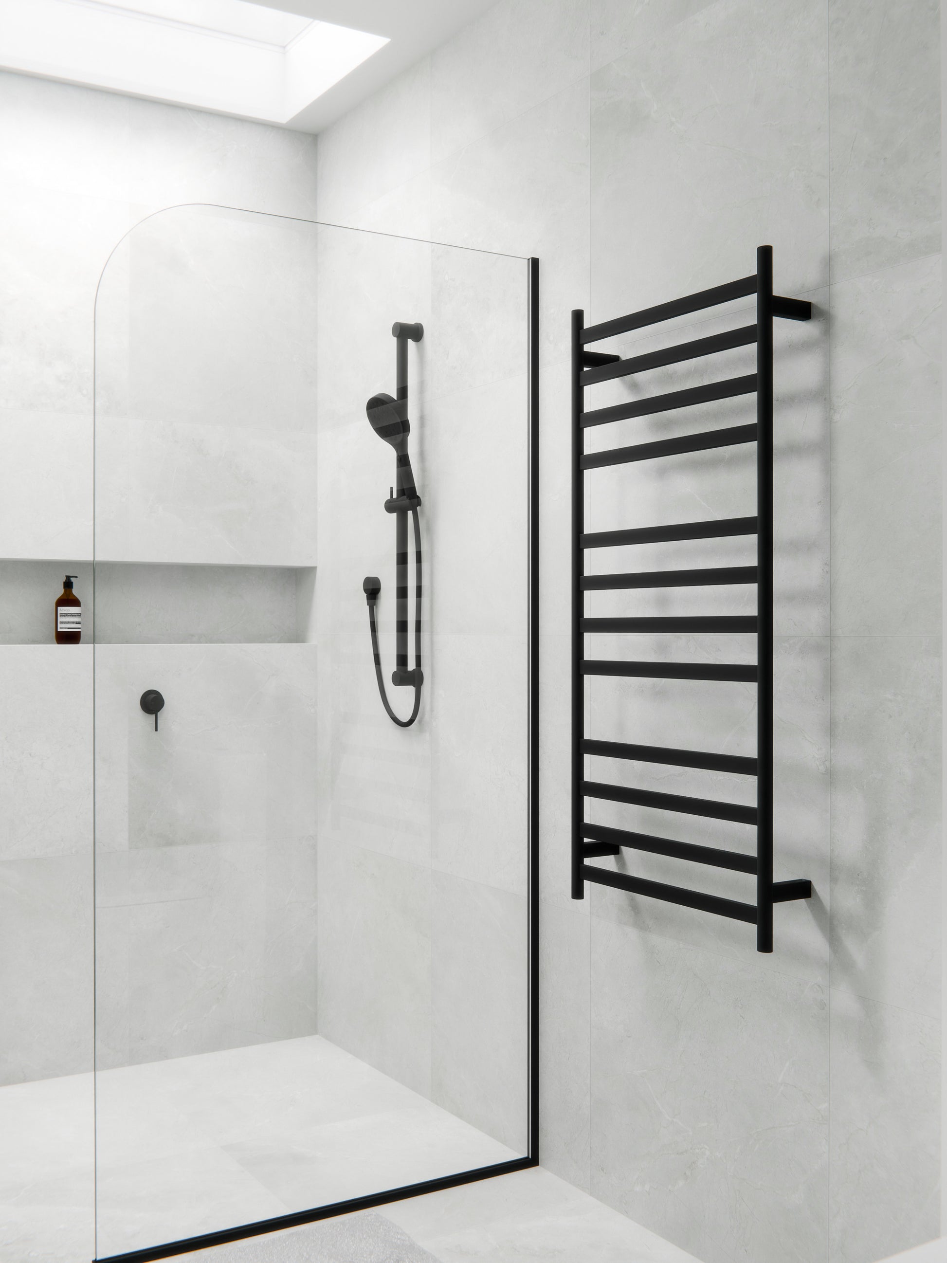 The Lineare Heated Towel Ladder brings style, comfort and practicality to your bathroom. It's signature square-round profile gives it a soft yet architectural look, clean lines blended with gentle curves, making it a versatile addition to both contemporary and classic bathroom styles.
