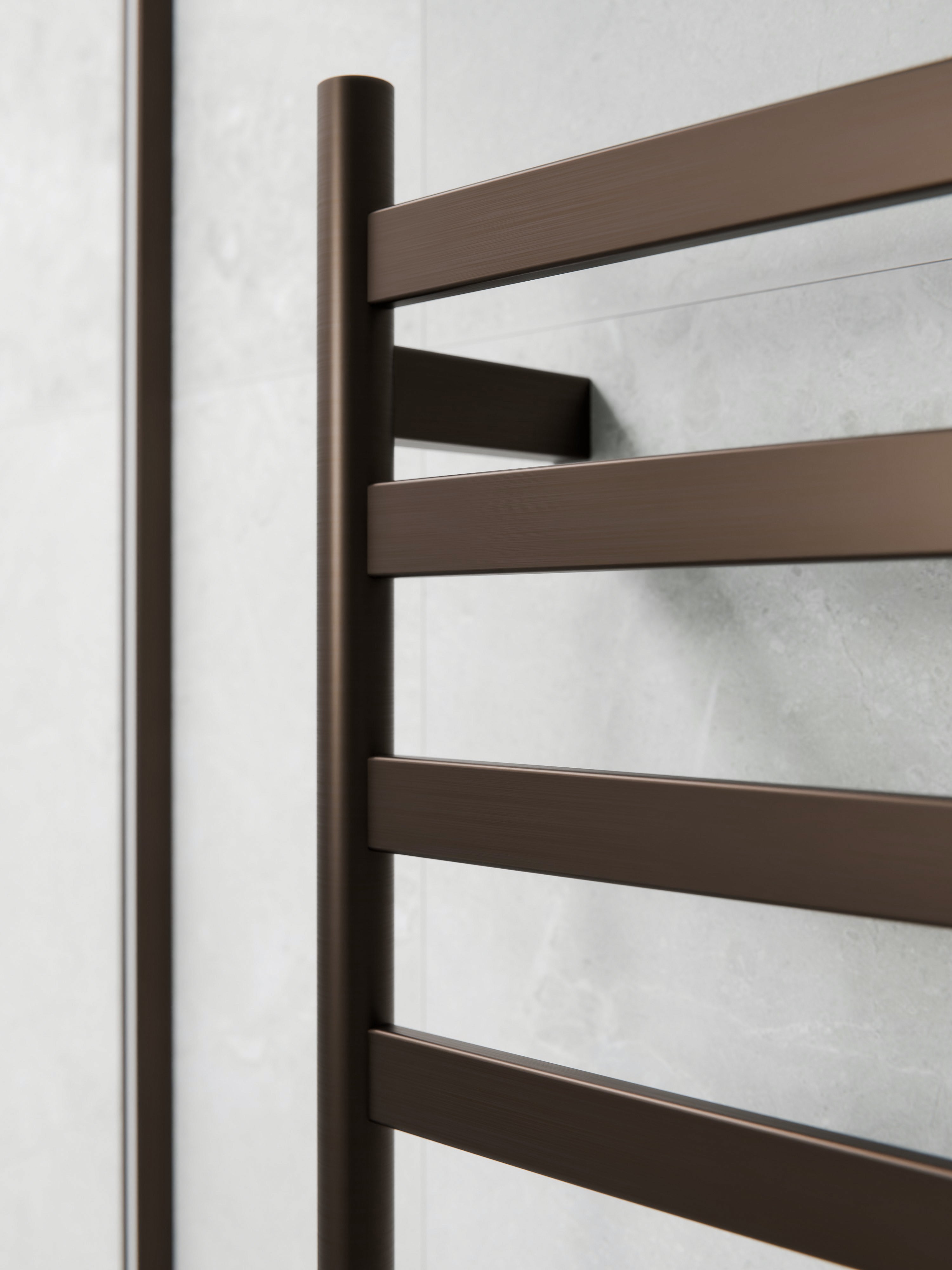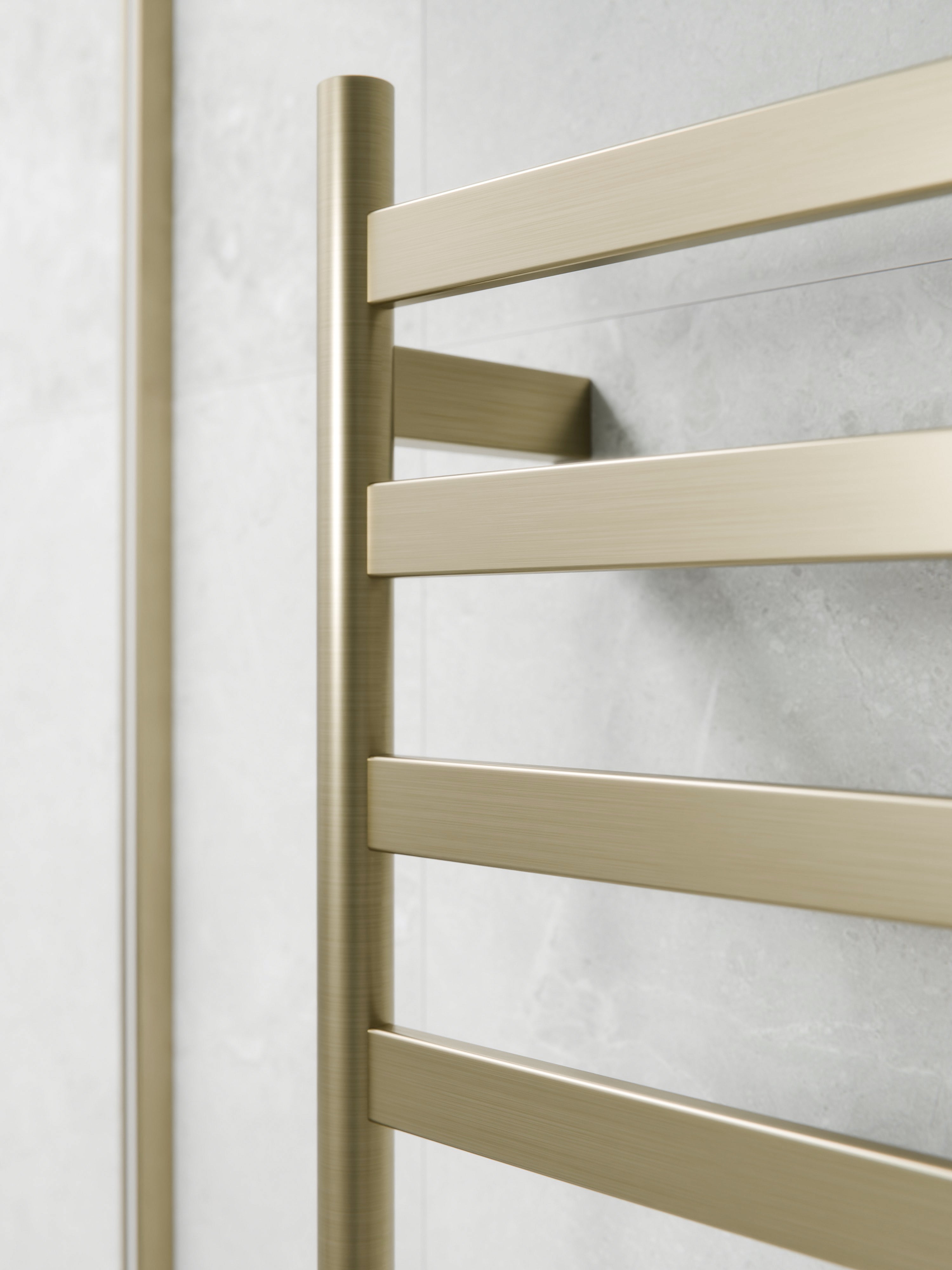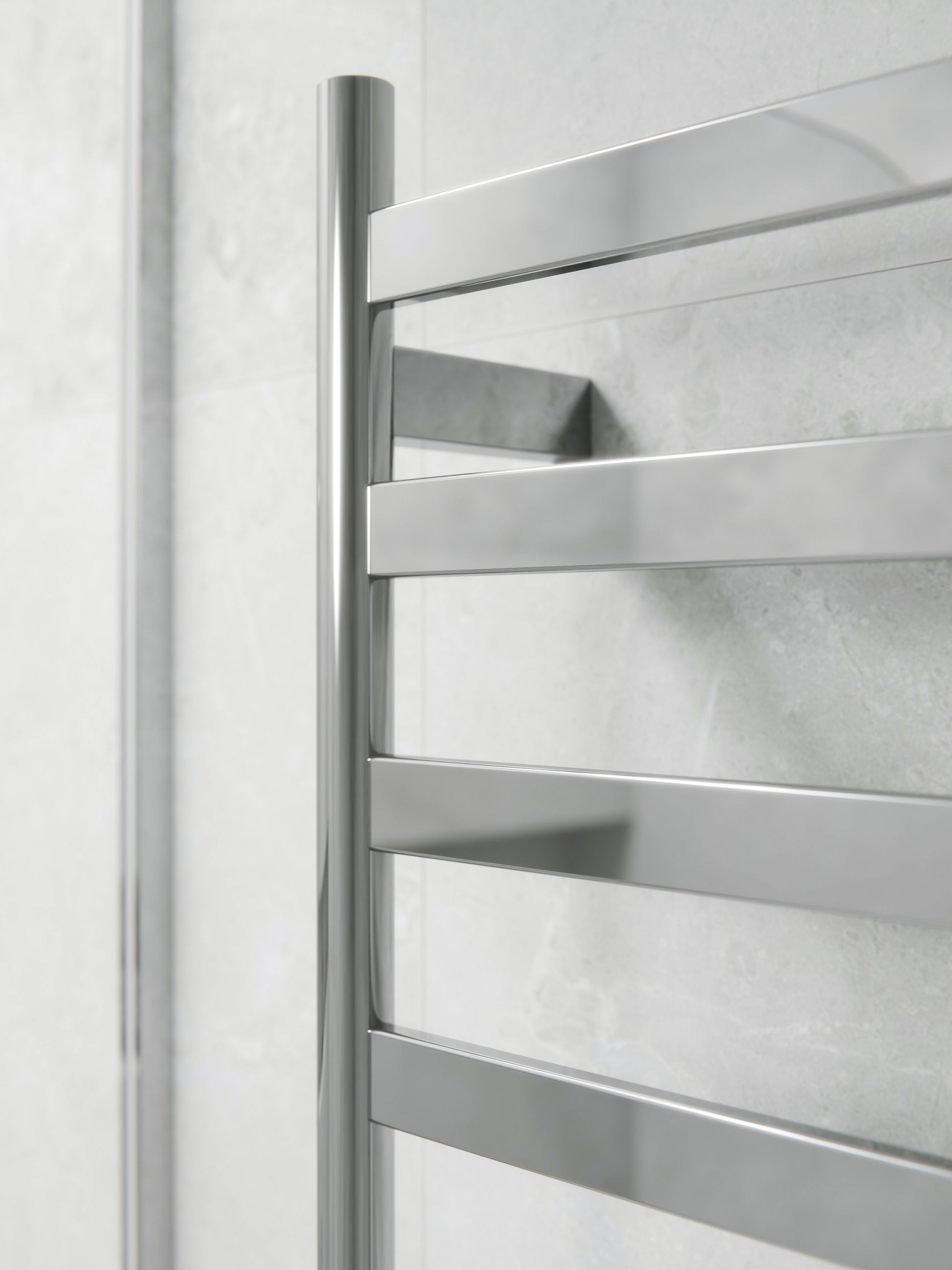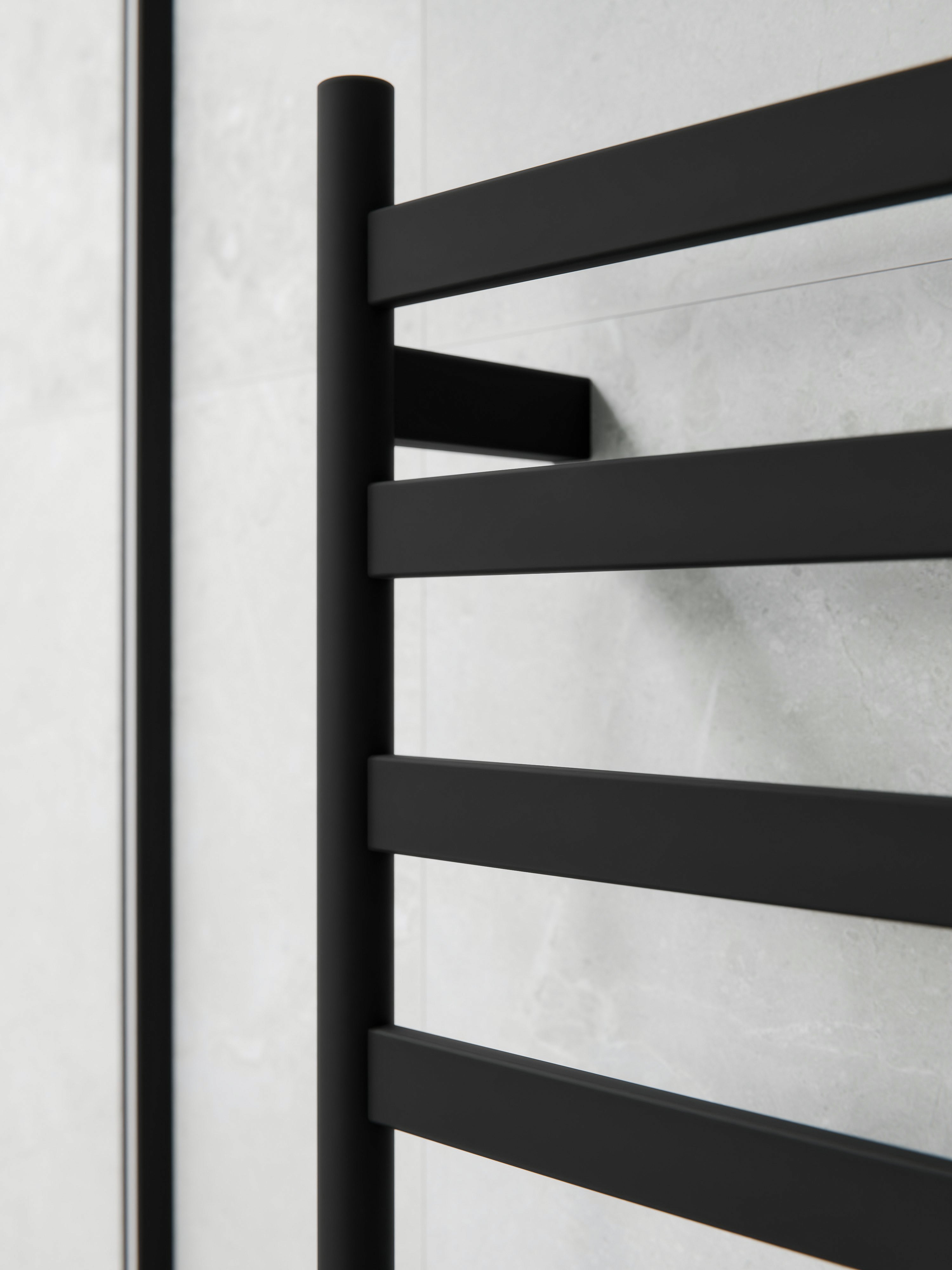 The Lineare Heated Towel Ladder brings style, comfort and practicality to your bathroom. It's signature square-round profile gives it a soft yet architectural look, clean lines blended with gentle curves, making it a versatile addition to both contemporary and classic bathroom styles.