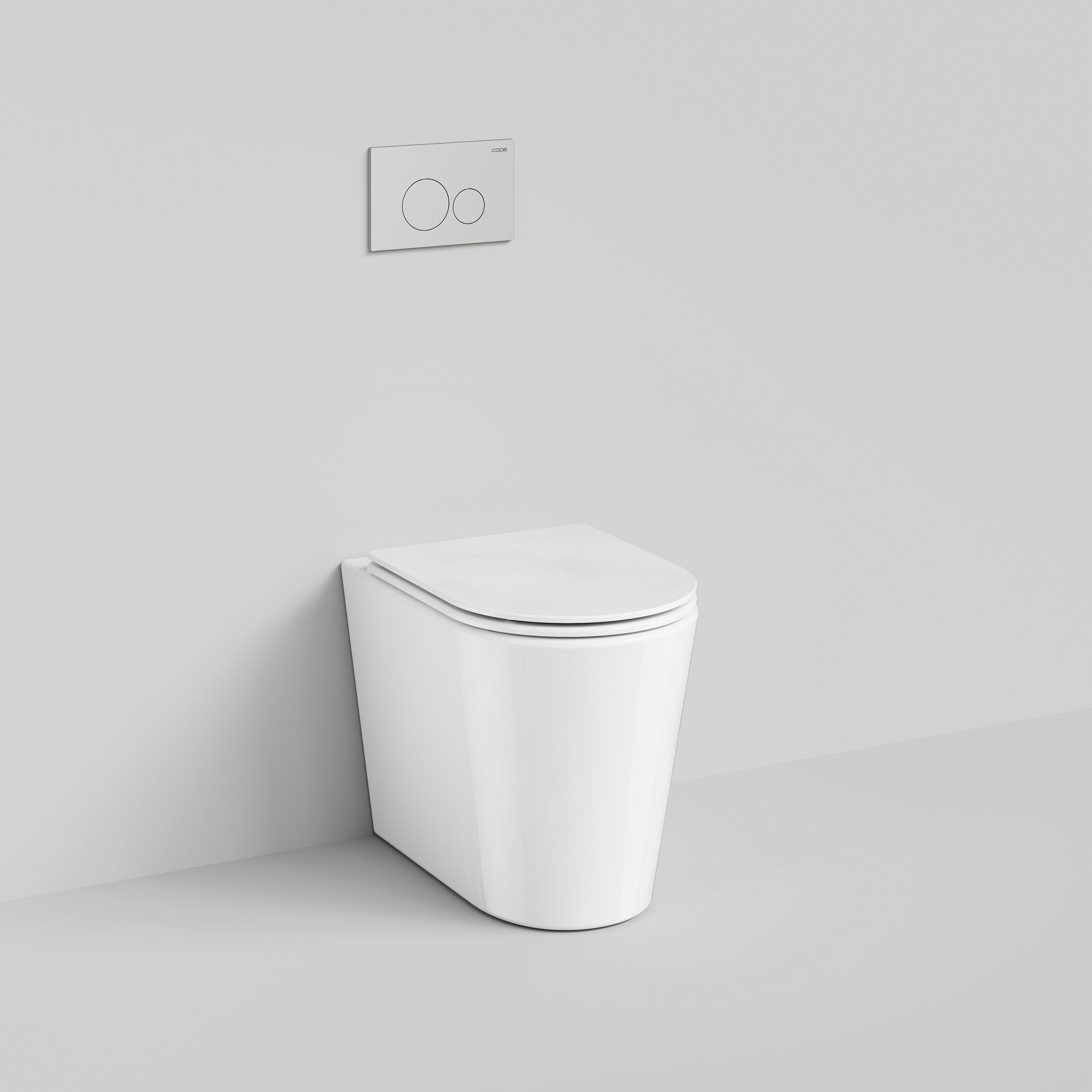 Elevate your bathroom with the Code Pure Typhoon inwall Toilet Suite. This sophisticated fixture combines elegant design with powerful typhoon flushing technology for optimal performance. The distinctive chrome button provides a refined accent, complementing contemporary bathroom aesthetics while ensuring reliable functionality.