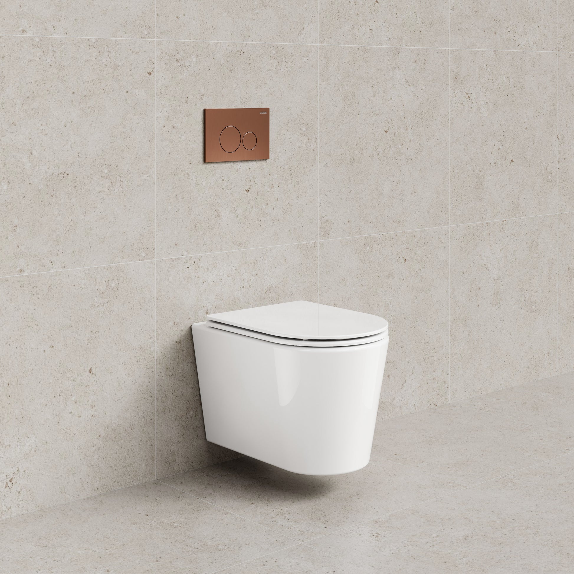 CODE PURE TYPHOON WALL HUNG TOILET SUITE | BRUSHED COPPER BUTTON