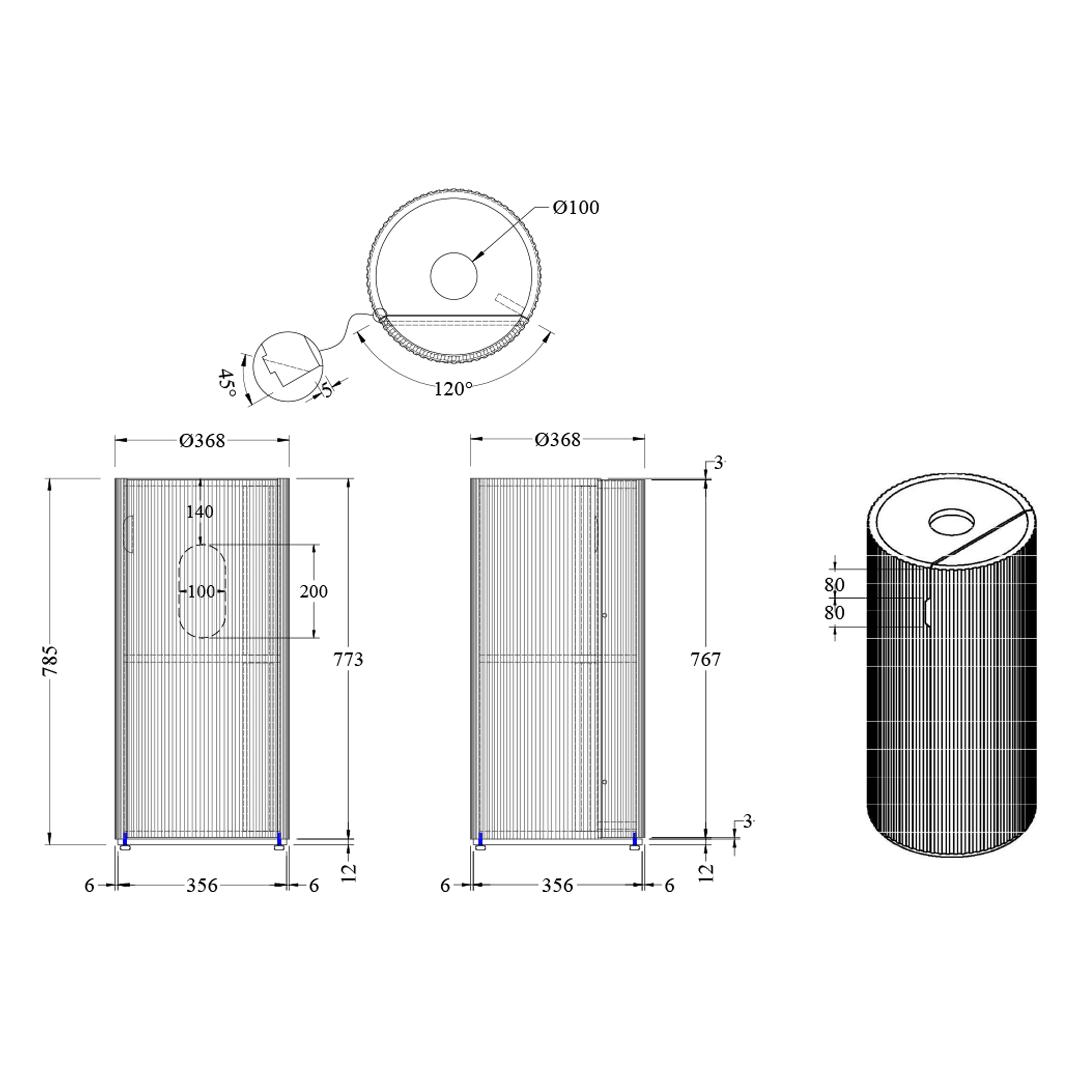 - Ø368 x 785H mm (suitable for Ø380 basins)