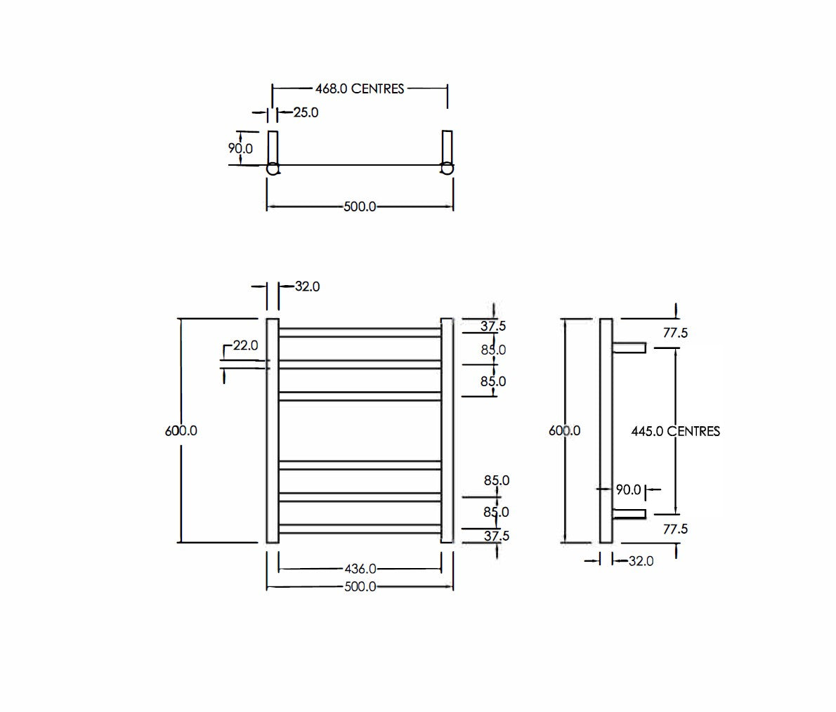 CODE ROUND HEATED TOWEL LADDER 600X500MM - 2 COLOURS