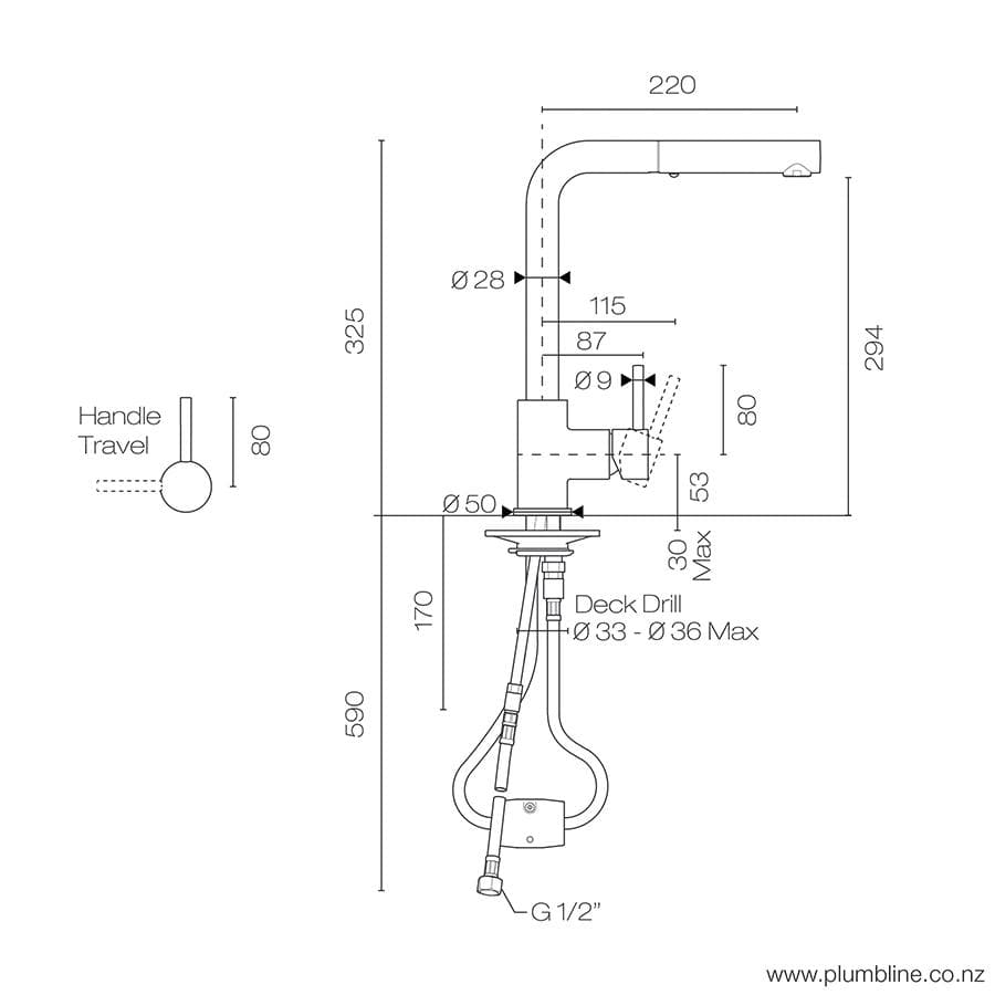 PLUMBLINE BUDDY SQUARE SPOUT PULLOUT SPRAY KITCHEN MIXER - 8 COLOURS