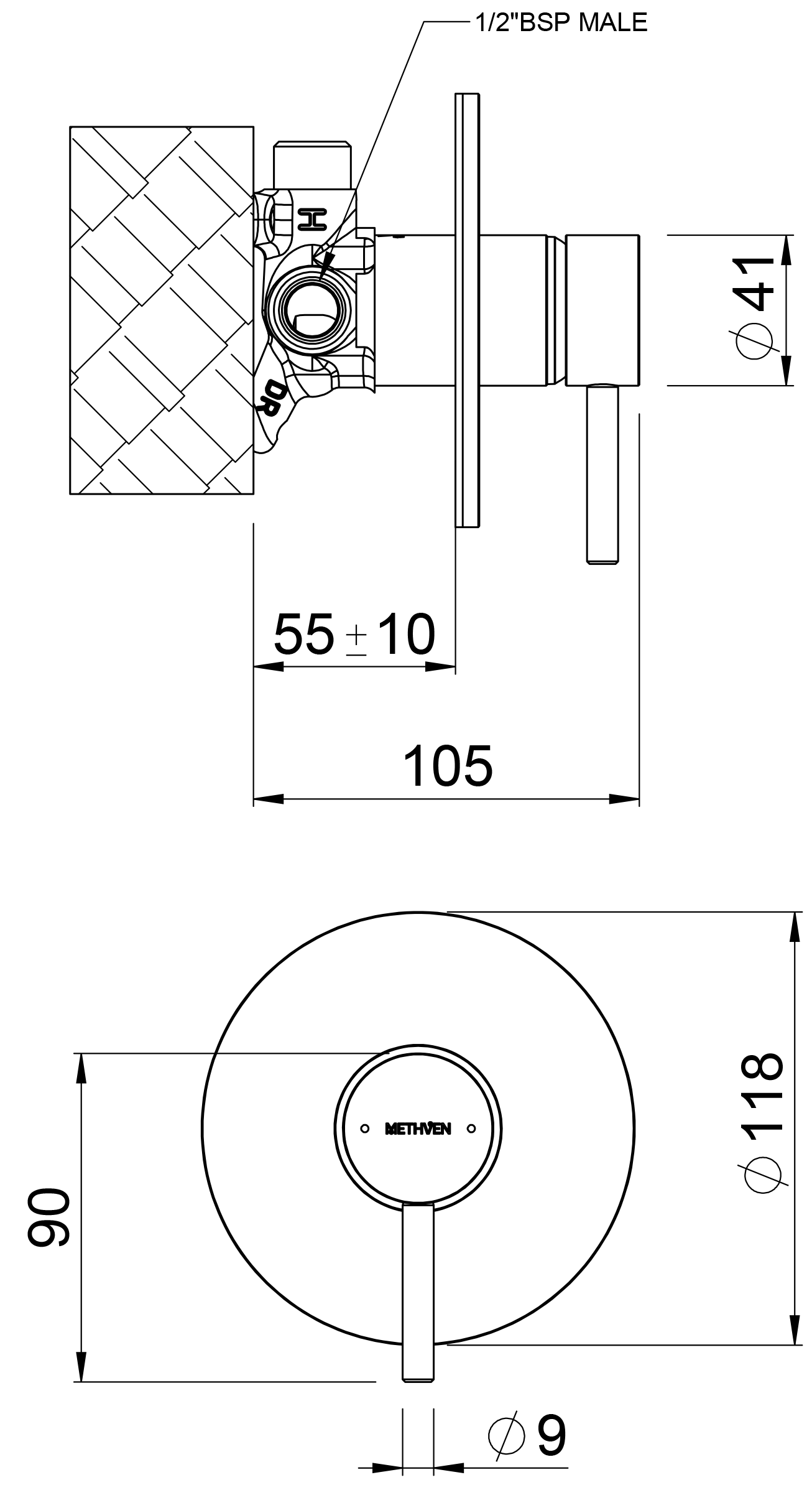 METHVEN TUROA SHOWER MIXER LARGE PLATE - 4 COLOURS