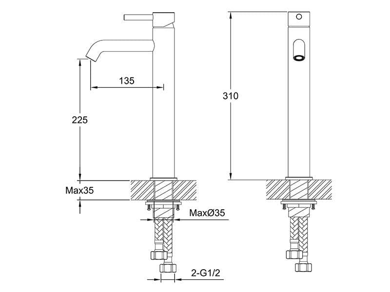 WATERWARE URBAN TALL BASIN MIXER BRUSHED STAINLESS STEEL