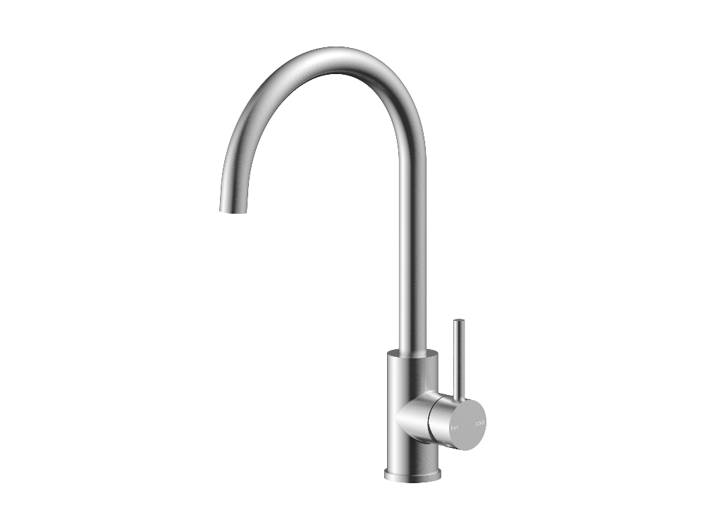Lead free stainless steel swivel spout kitchen mixer in a brushed stainless steel finish